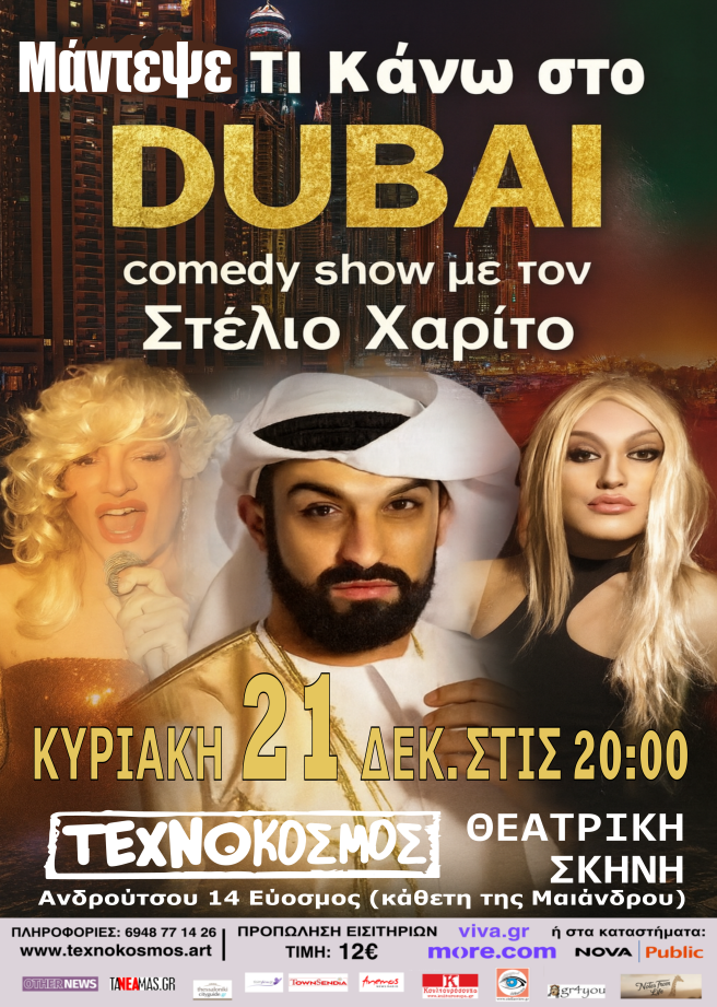 «Μάντεψε τι κάνω στο DUBAI…» Νέα παράσταση του Στέλιου Χαρίτου την Κυριακή 21 Δεκεμβρίου στις 20:00 στην Θεατρική Σκηνή Τεχνόκοσμος στον Εύοσμο Θεσσαλονίκης